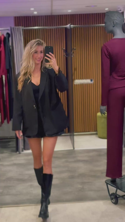 Deze oversized blazer is de perfecte combinatie van chic en stoer. De subtiele glitters geven een luxueuze touch, terwijl de losse pasvorm zorgt voor een nonchalante, trendy look. Draag ‘m met een short en laarzen voor een edgy outfit of combineer met een strakke pantalon voor een stijlvolle avondlook.